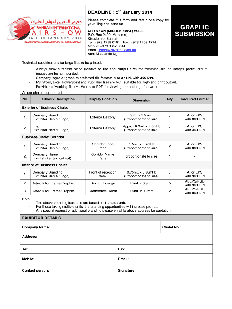 DEADLINE : 5th January 2014 Please complete this form and retain one copy for your filing and send to: CITIZEN (MIDDLE EAST) W.L.L. P.O. Box 2490, Manama, Kingdom of Bahrain Tel: +973 1759 0191 Fax: