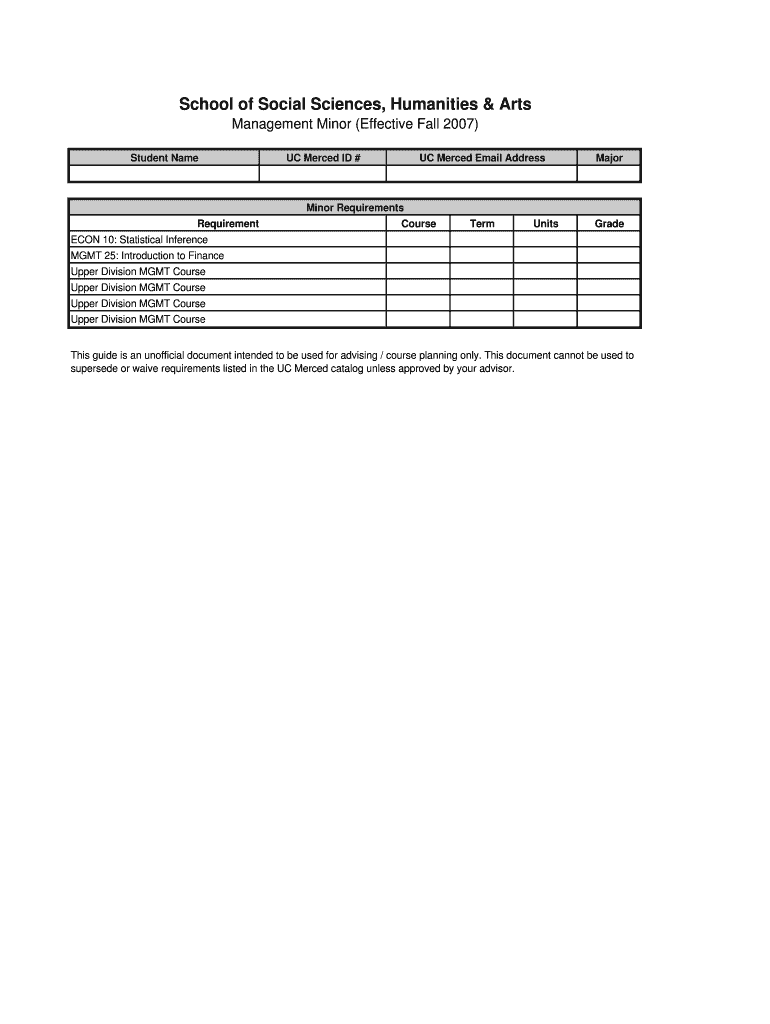Get the free UC Merced Management Minor Requirements