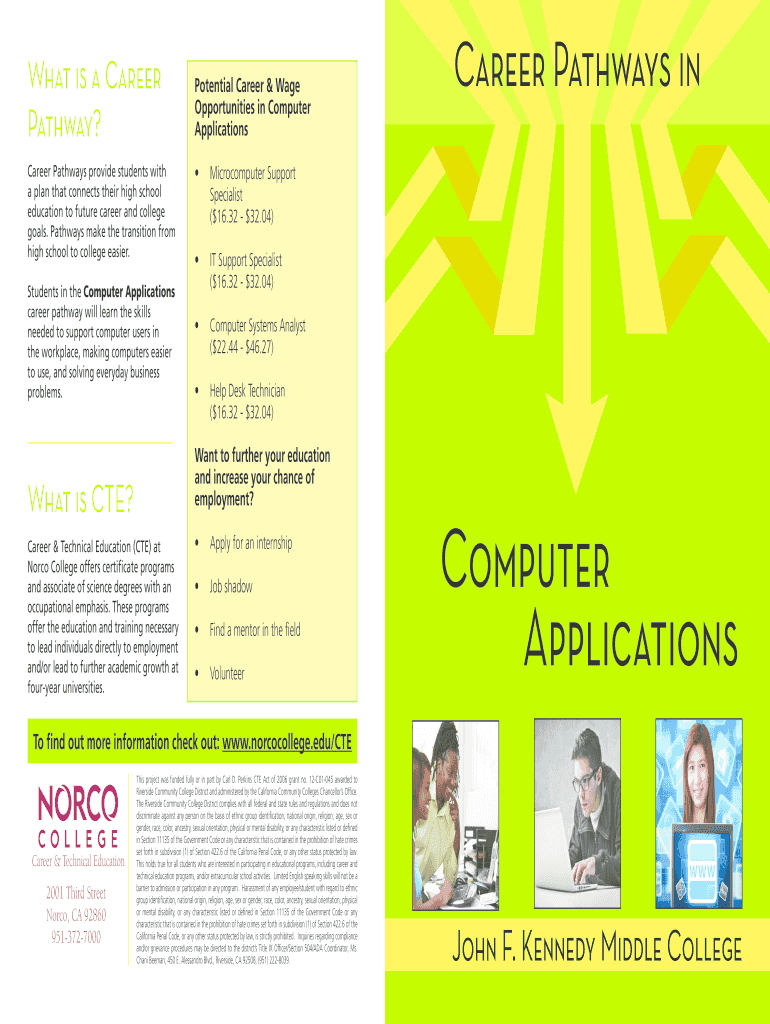 The Computer Applications Career Pathways is a career pathways template used by high school students in California to plan their education and align with future career goals in computer applications.