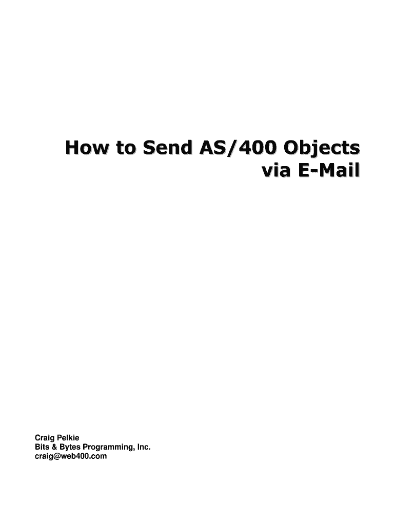 How to Send AS×400 Objects via Email Craig Pelvic Bits & Bytes Programming, Inc. Craig web400.com How to Send AS×400 Objects via Email Edition EMAILOBJECTS 20020219 Published by Bits & Bytes Programming,