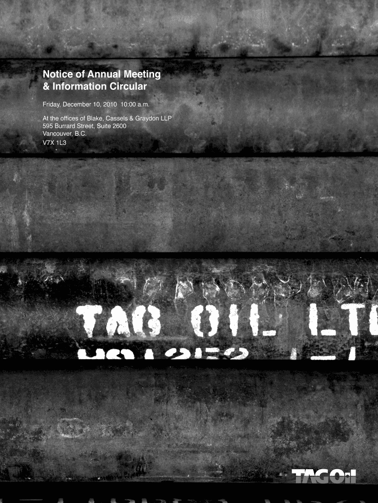 Notice of Annual Meeting & Information Circular Friday, December 10, 2010 10:00 a.m. At the offices of Blake, Tassels & Gray don LLP 595 Bernard Street, Suite 2600 Vancouver, B.C. V7X 1L3 NOTICE OF