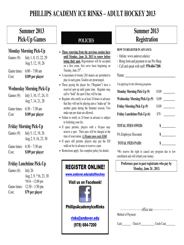 How to fill out PHILLIPS ACADEMY ICE RINKS – ADULT HOCKEY 2013