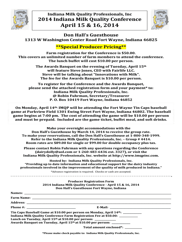 Get the free Indiana Milk Quality Professionals Inc 2014 Indiana Milk