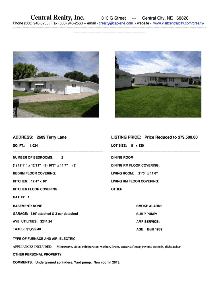 Central Realty, Inc. 313 G Street --- Central City, NE 68826 Phone (308) 946-3263 / Fax (308) 946-2563 -- email — realty cablene.com / website — www.visitcentralcity.com×realty/ -----------------------------------------------------------------------------------------------------------------------------------------------------------------------------------------------------------------------------------