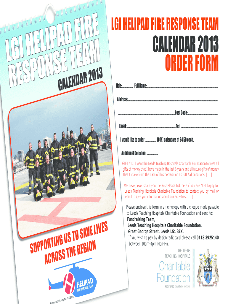 Get the free LGI HELIPAD FIRE RESPONSE TEAM CALENDAR 2013 ORDER FORM - leedshospitalsfundraising org
