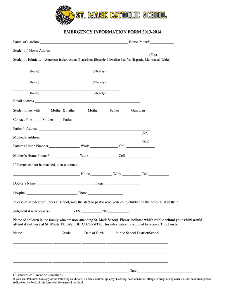 Edit your emergency information form 20132014 form online