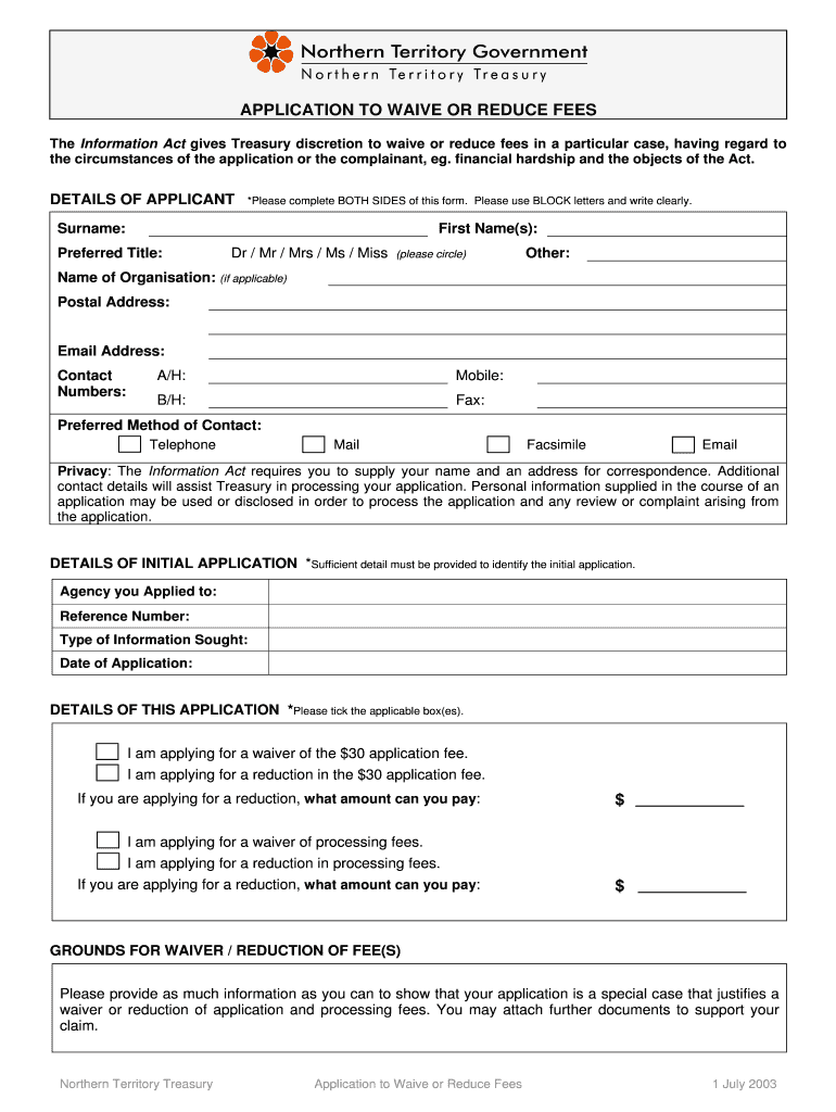 Get the free Waive or reduce feesdoc