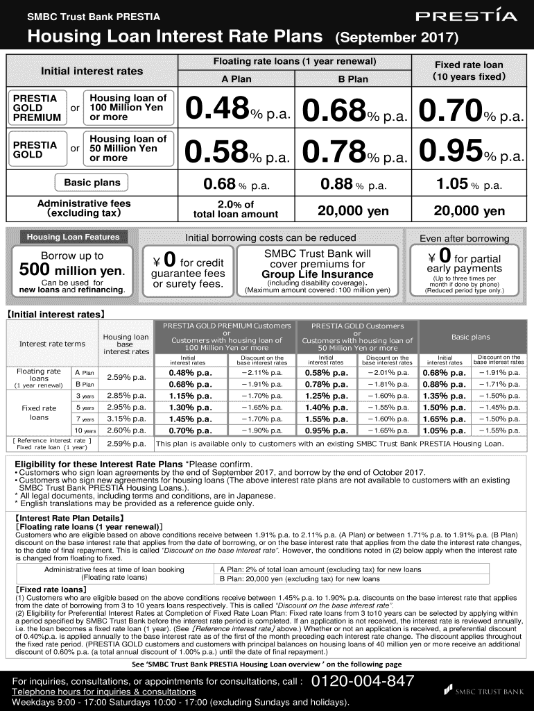 SMBC Trust Bank PRESTIAHousing Loan Interest Rate Plans×September 2017×Floating rate loans (1 year renewal×Initial interest rates