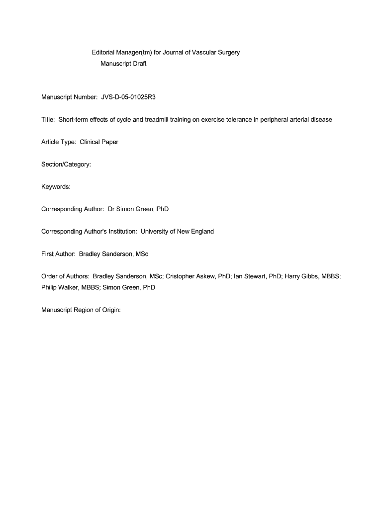 Get the free Editorial Manager for Journal of Vascular Surgery - espace library uq edu