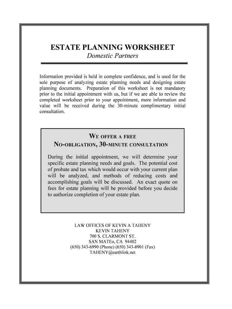Get the free ESTATE PLANNING WORKSHEET Domestic Partners - blawkatbbcomb