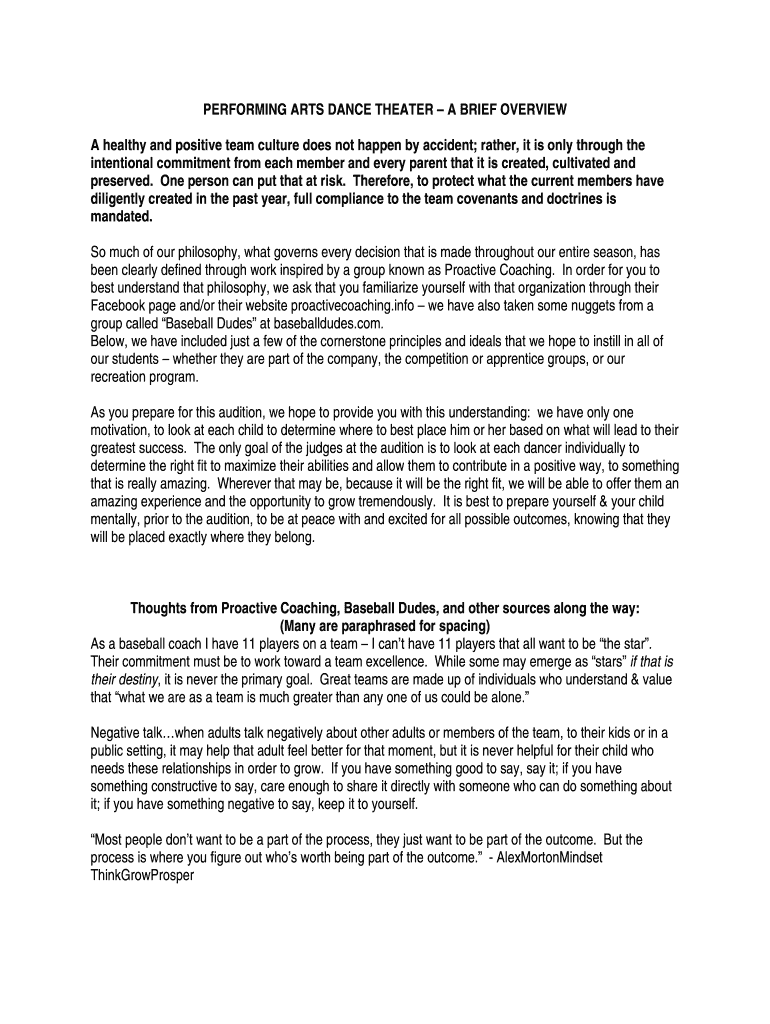 Get, Create, Make and Sign performing arts dance formater