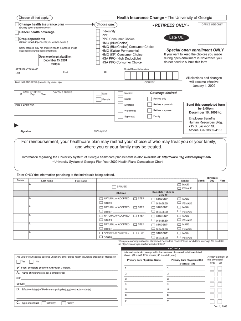 Get the free Health Insurance Change - busfin uga