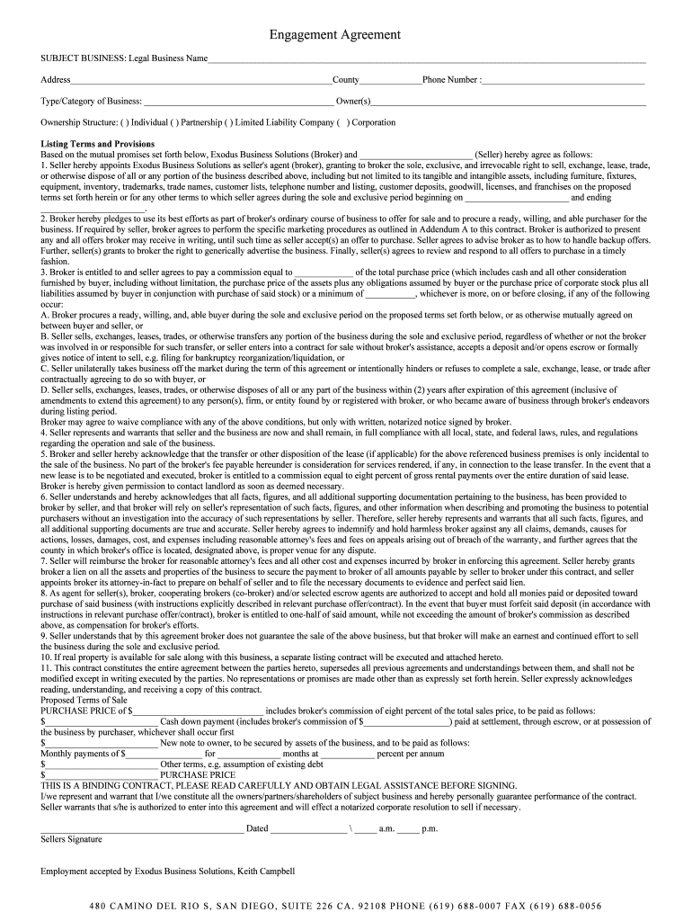 Get the free New Listing Agreement - Exodus Business Solutions