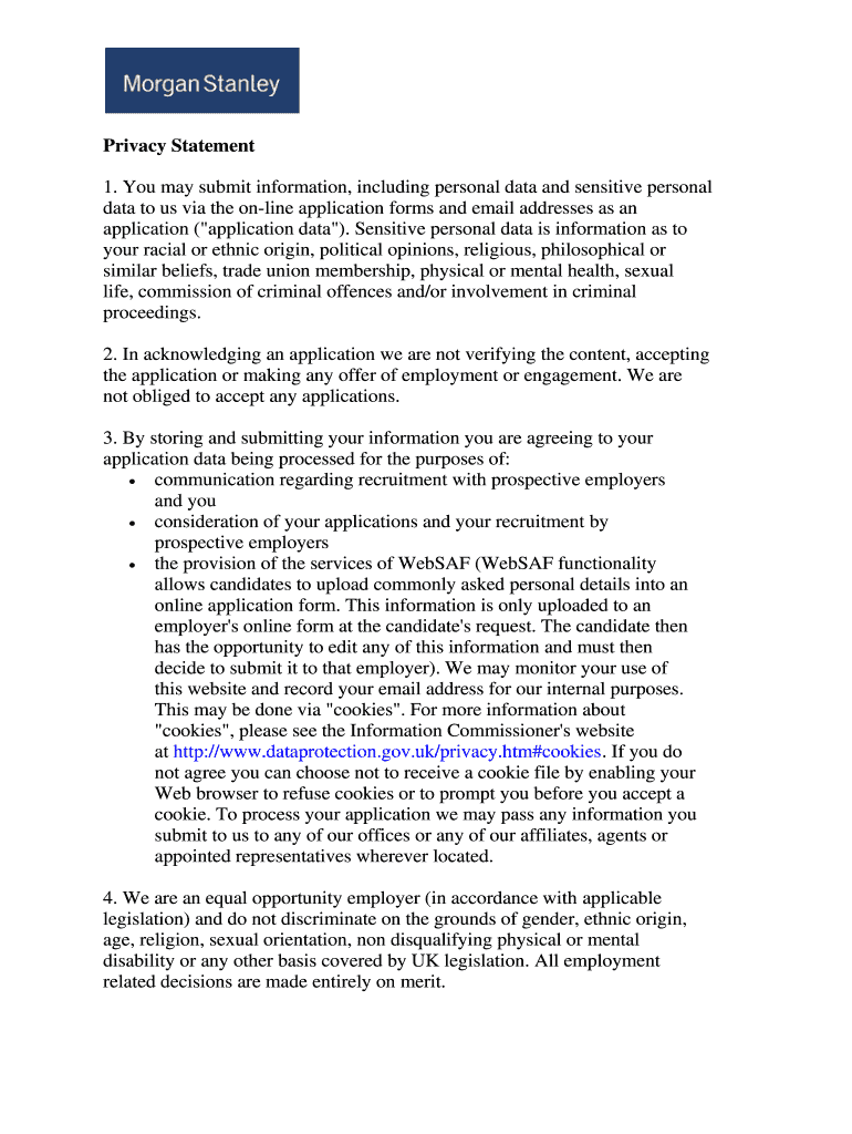 Privacy Statement 1. You may submit information, including personal data and sensitive personal data to us via the online application forms and email addresses as an application (“application data