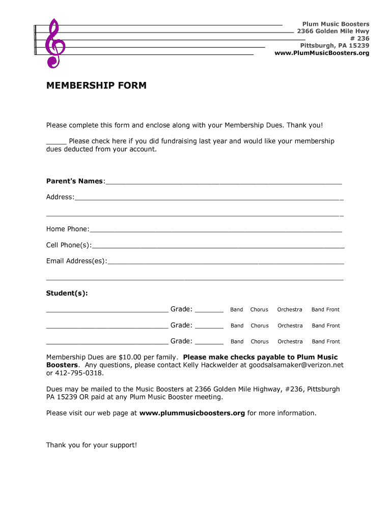 Get the free MEMBERSHIP FORM - Plum Music Boosters - plummusicboosters