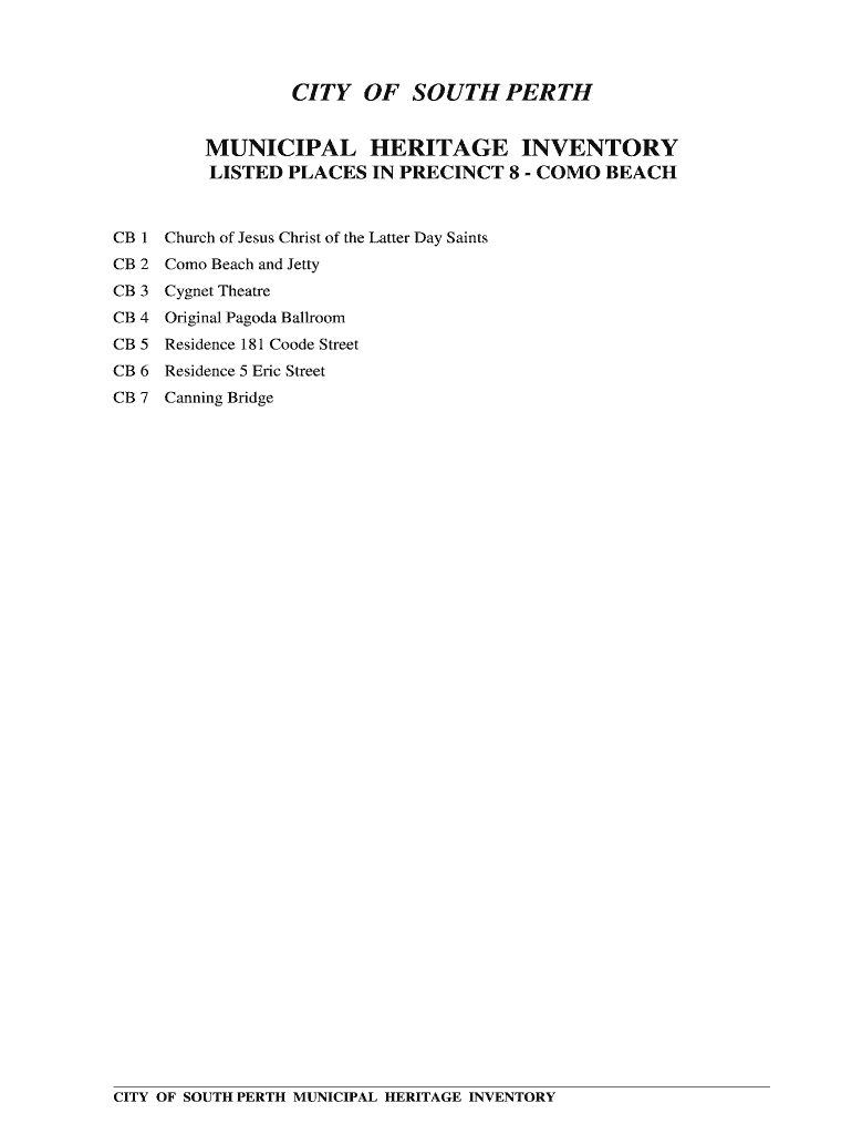 Get the free CITY OF SOUTH PERTH MUNICIPAL HERITAGE INVENTORY