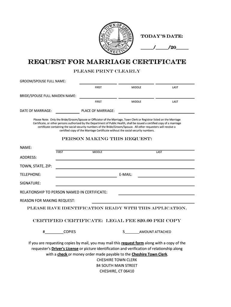 Get the free Request for Marriage Certificate - cheshirect