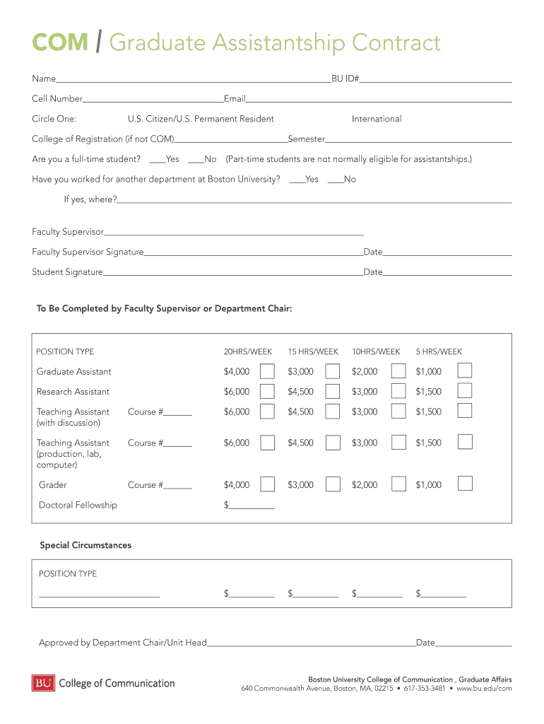 Get the free COM Graduate Assistantship Contract - Boston University - bu