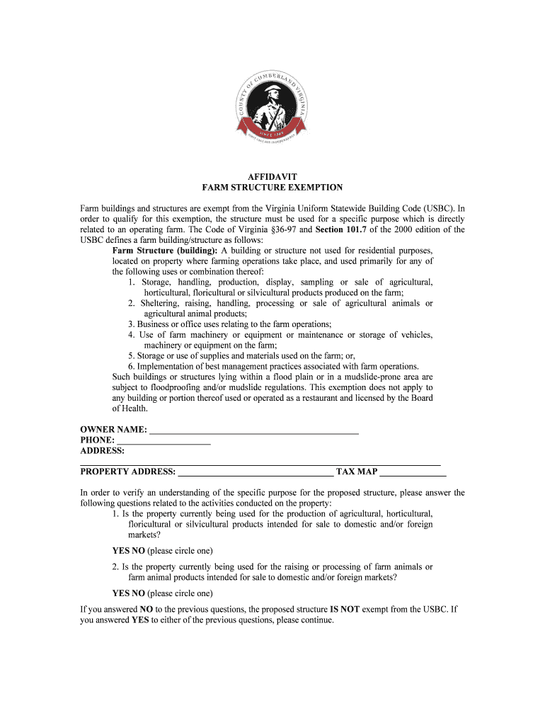 Get the free Virginia Farm Structure Exemption Affidavit