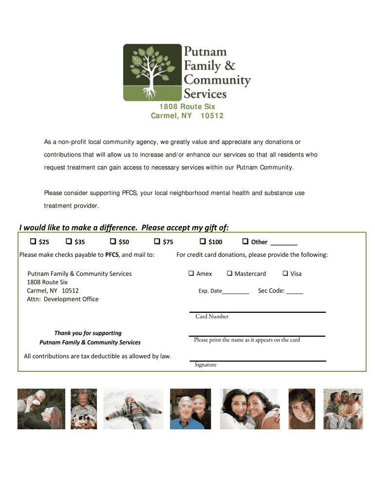 1808 Route Six Carmel, NY 10512 As a nonprofit local community agency, we greatly value and appreciate any donations or contributions that will allow us to increase and×or enhance our services so