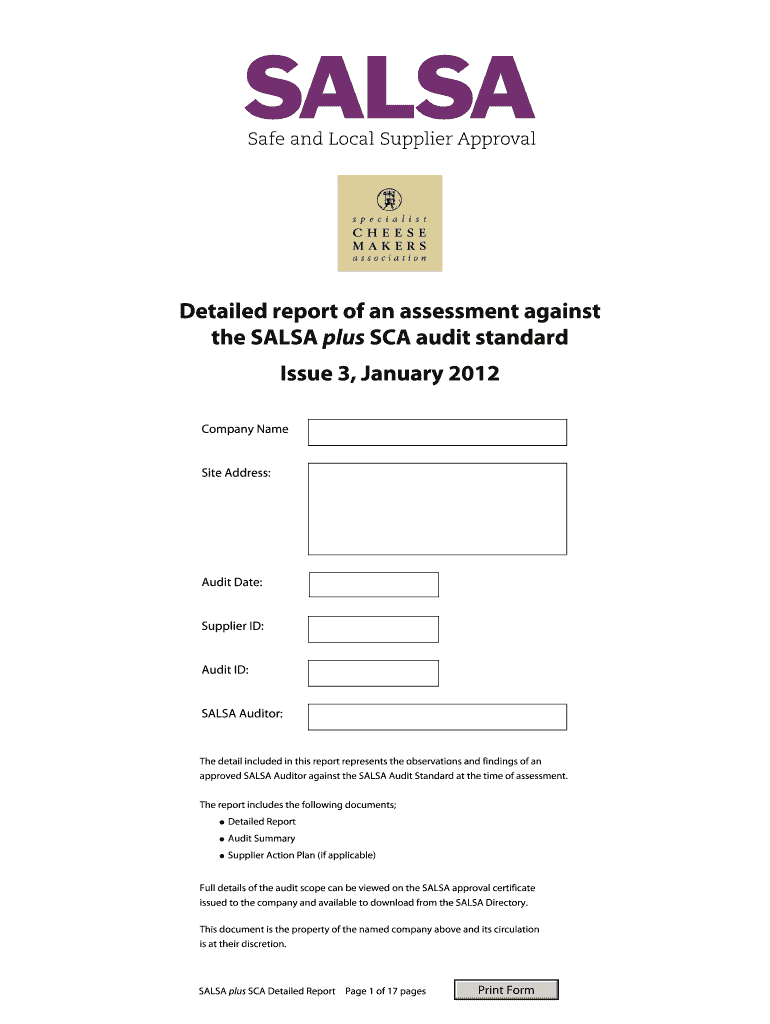 Detailed report of an assessment against the SALSA plus SCA audit standard Issue 3, January 2012 Company Name Site Address: Audit Date: Supplier ID: Audit ID: SALSA Auditor: The detail included in