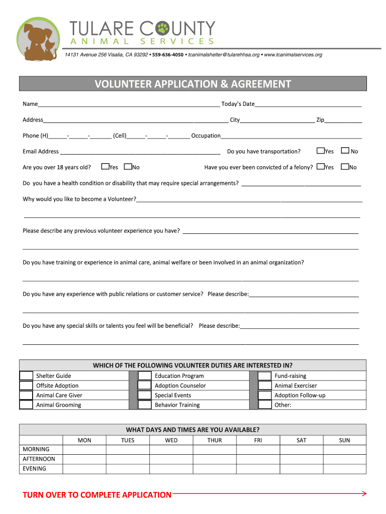 Get the free BVOLUNTEERb APPLICATION amp bAGREEMENTb - tcanimalservicesorg
