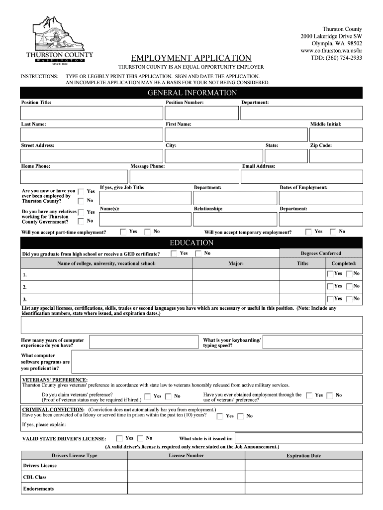 Get the free Employment Application - co thurston wa