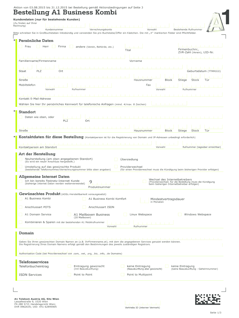 bestellung a1 business kombi ist ein Formular zur Beantragung von Business-Kombi-Tarifen bei A1.