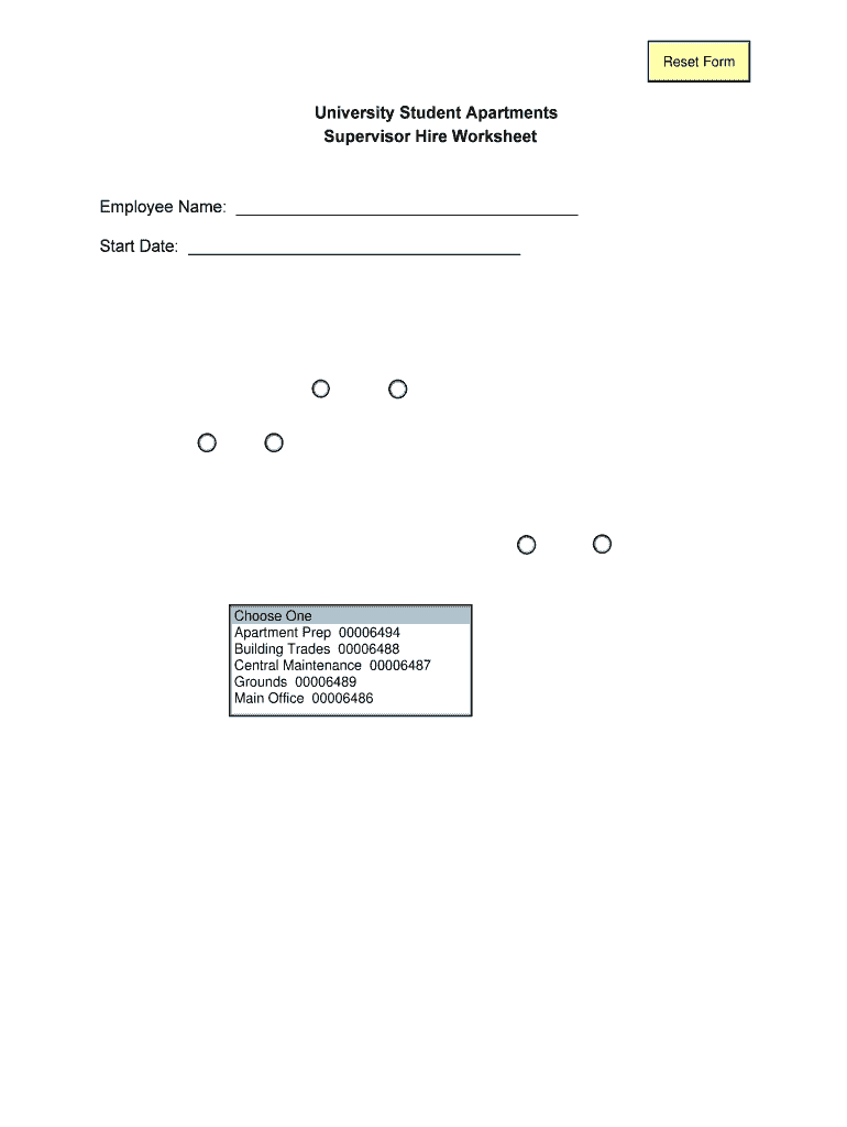 University Student apartments×b Supervisor Hire Worksheet. Employee Name: Start Date: BB BBB.