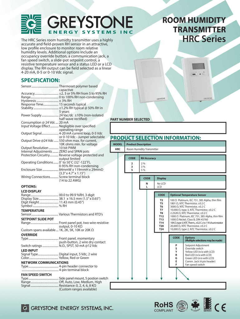 Get the free ENERGY SYSTEMS INC The HRC Series room humidty transmitter