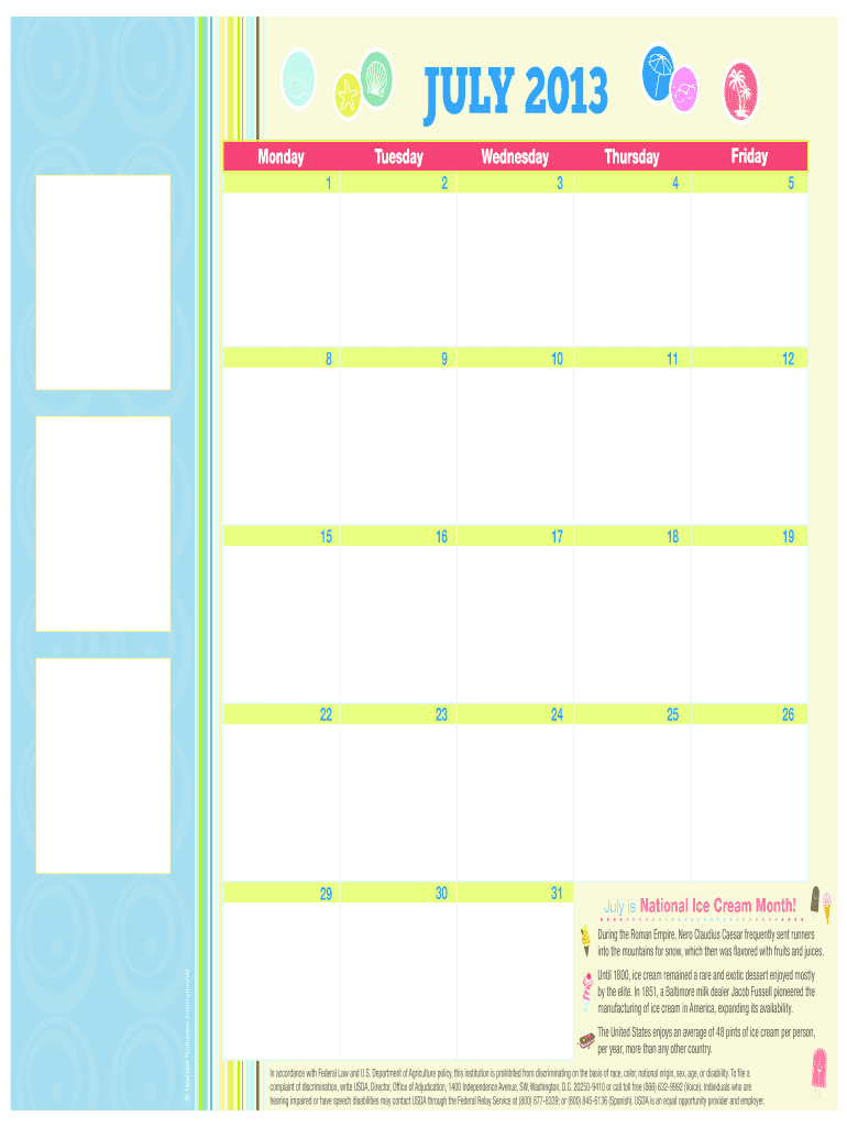 JULY 2013 Tuesday Monday Wednesday Friday Thursday 1 2 3 4 5 8 9 10 11 12 15 16 17 18 19 22 23 24 25 26 29 30 31 28 29 July is National Ice Cream Month! Horizon Software International During the Roman