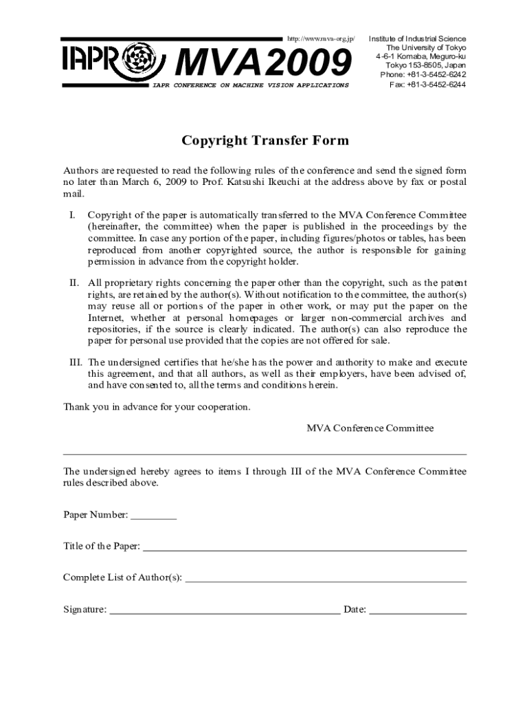 HTTP://www.mvaorg.jp/MVA2009 APR CONFERENCE ON MACHINE VISION APPLICATIONSInstitute of Industrial Science The University of Tokyo 461 Omaha, Heroku Tokyo 1538505, Japan Phone: +81354526242 Fax: +81354526244Copyright