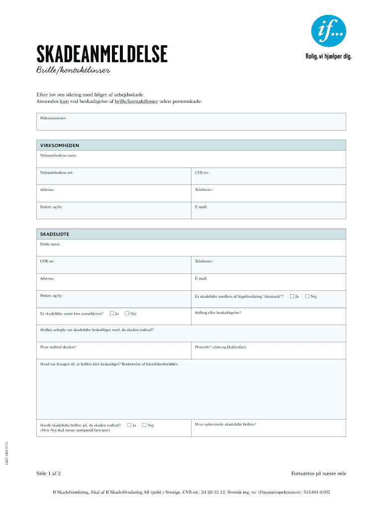SKADEANMELDELSE Grille×kontaktlinser After love on siring mod Alger AF arbejdsskade. Avenues run led beskadigelse AF grille×kontaktlinser den personae. Policenummer: VIRKSOMHEDEN Virksomhedens Navy: