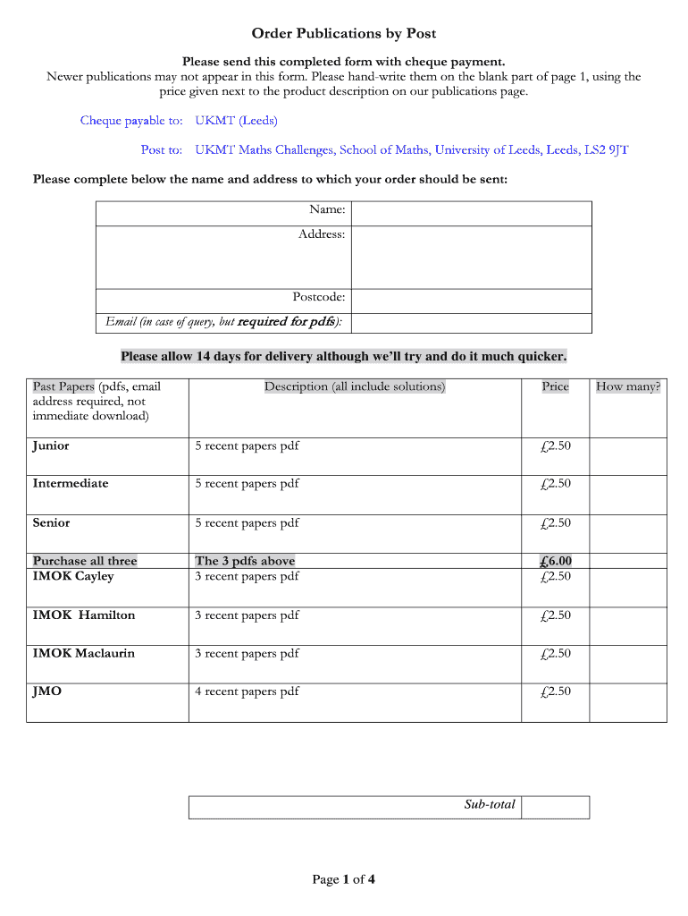 Get the free Order Publications by Post - mathcomp leeds ac
