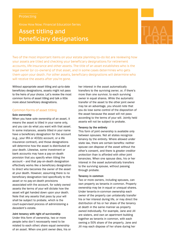 Get the free Asset titling and