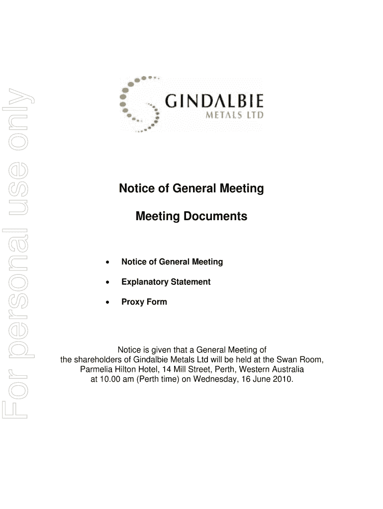 For personal use only Notice of General Meeting Documents Notice of General Meeting Explanatory Statement Proxy Form Notice is given that a General Meeting of the shareholders of Findable Metals Ltd