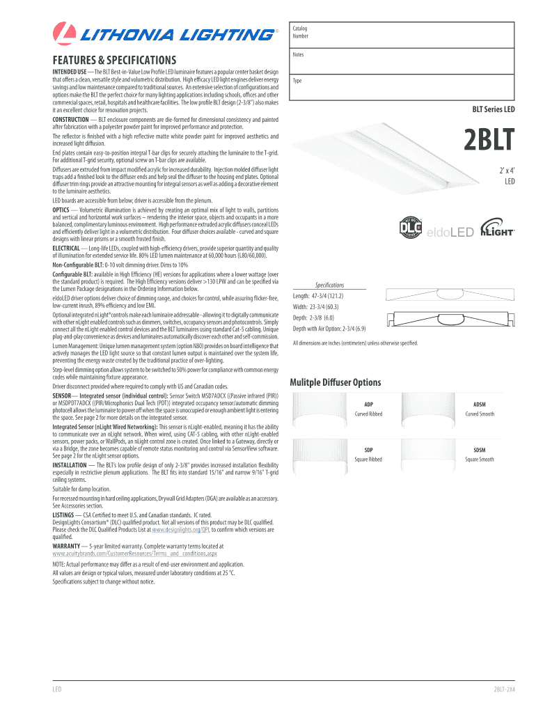 Catalog Number FEATURES & SPECIFICATIONS INTENDED USE The BLT BestinValue Low Profile LED luminaire features a popular center basket design that offers a clean, versatile style and volumetric distribution.