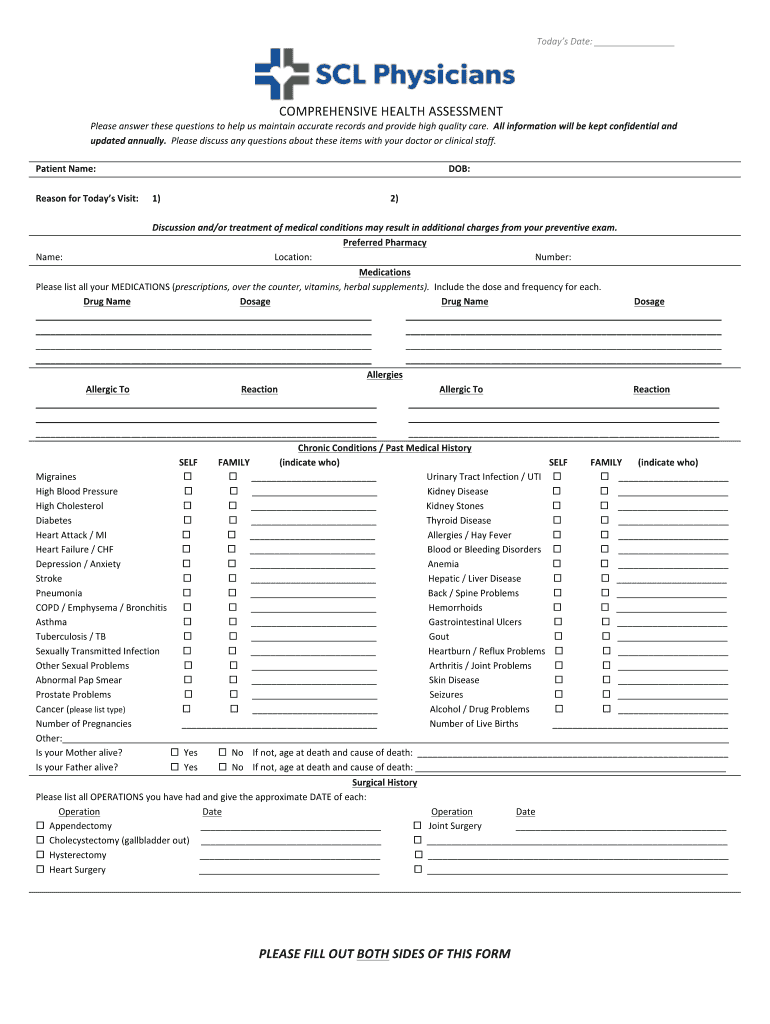Today's Date: COMPREHENSIVE HEALTH ASSESSMENT Please answer these questions to help us maintain accurate records and provide high quality care. All information will be kept confidential and updated