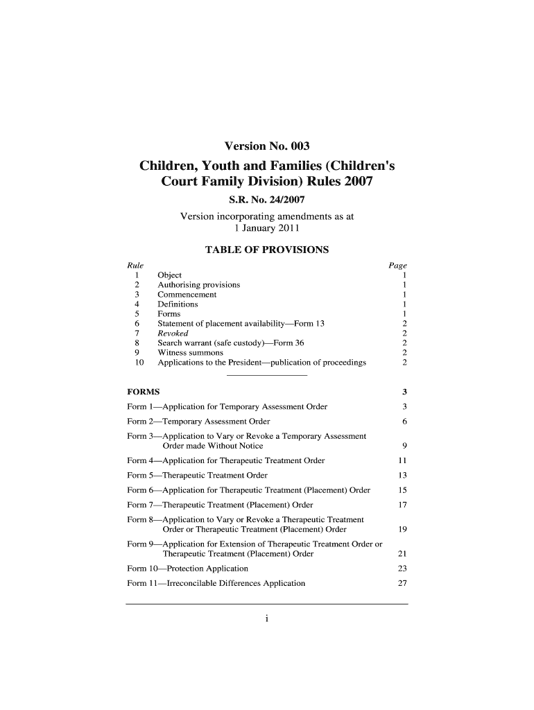 These forms are governed by the Children, Youth and Families (Children's Court Family Division) Rules 2007, which outline the procedures and requirements for proper submissions.