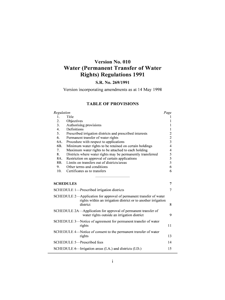 Obtain a copy of the Water (Permanent Transfer of Water Rights) Regulations 1991 documents.
