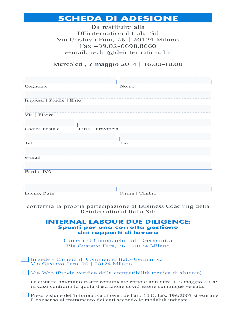 Norm tribute Network BUSINESS COACHING Della DEinternational Italia NRL BUSINESS COACHING Della DEinternational INTERNAL Labor Italia NRL DUE DILIGENCE: Spunti per RNA Coretta Come Gesture gemstone