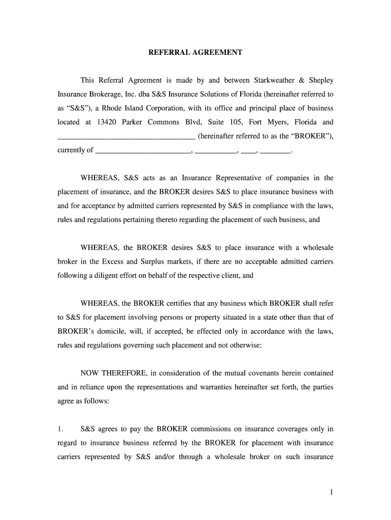 Get the free BReferralb Brokerage bAgreementb - Insurance Solutions of Florida
