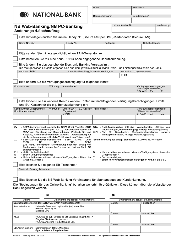 Holen Sie sich kostenlos NB Web-BankingNB PC-Banking nderungs-Lschauftrag - national-bank