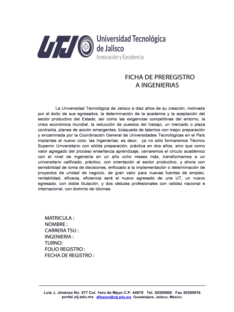 Obtener el gratis FICHA DE PREREGISTRO A INGENIERIAS - saiiutbutjbbedubbmxb - saiiut utj edu