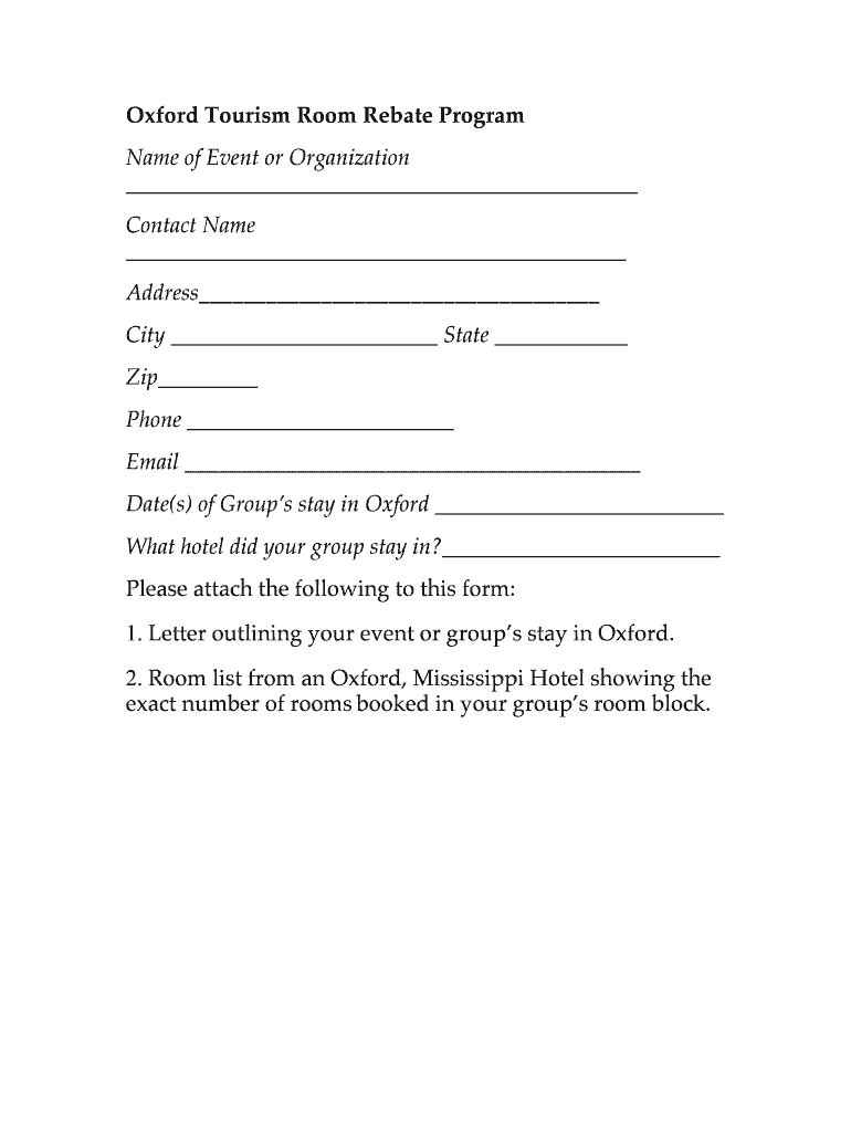 Fill out your oxford tourism room rebate online with pdfFiller!