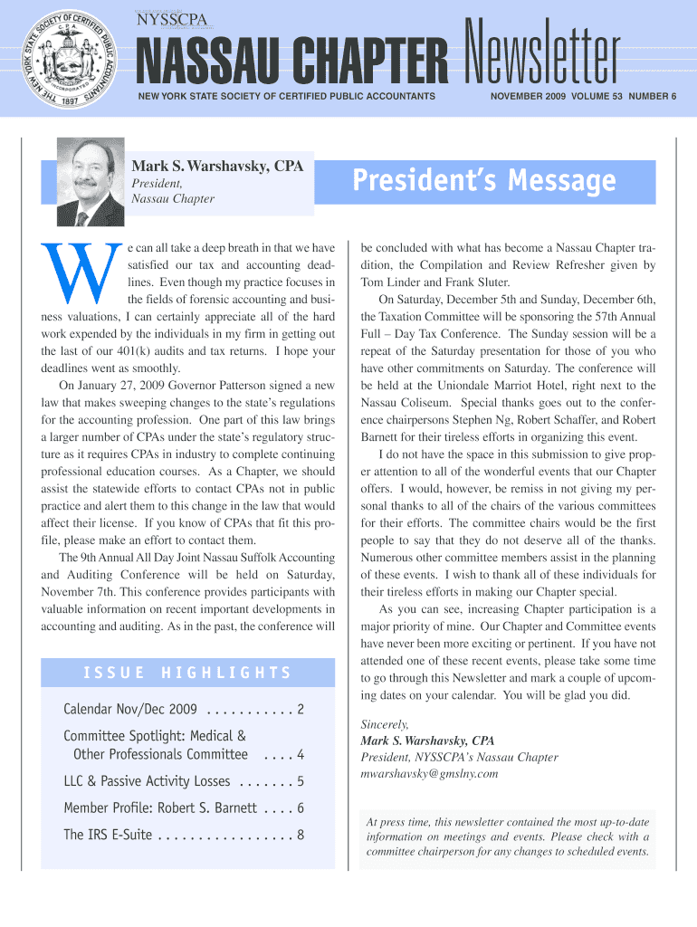 Get the free Nassau Chapter Newsletter - November 2009 - nysscpa