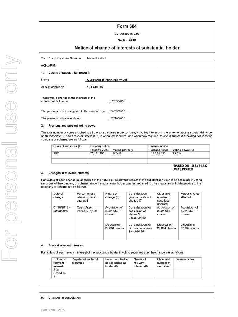 Get the free 4 March 2016 Change in substantial holding - iSelect Corporate