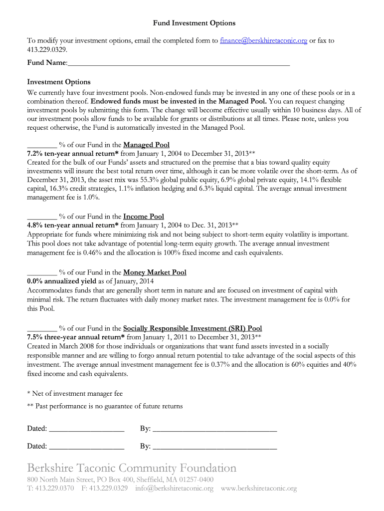 Get the free Investment Pool Change Form - Berkshire Taconic Community ... - berkshiretaconic