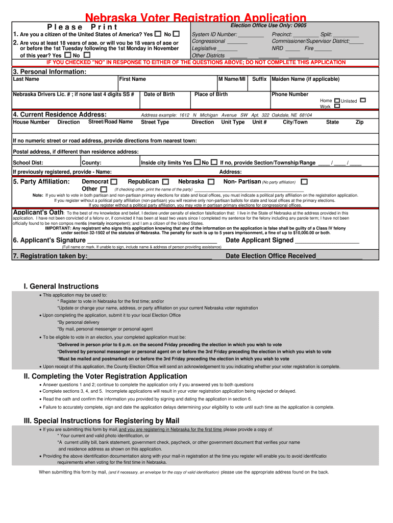 How to fill out the nebraska voter registration application