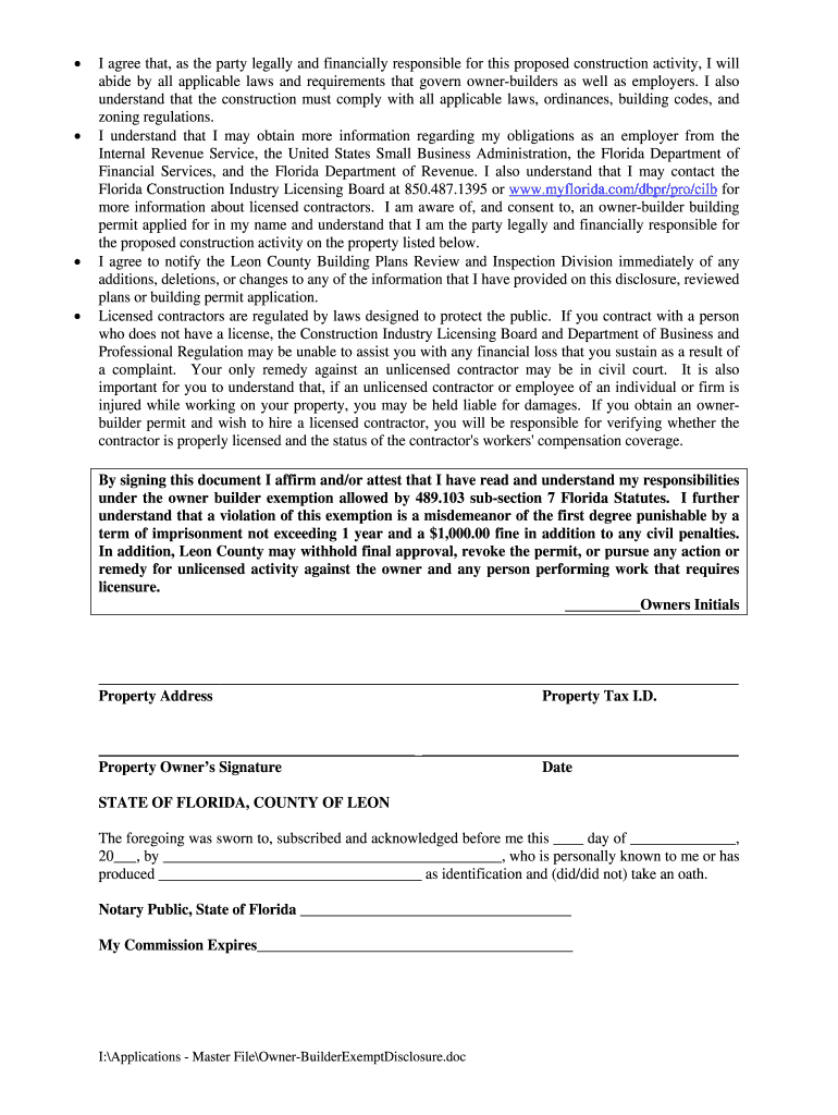 Get the free Florida Owner-Builder Exemption Affidavit
